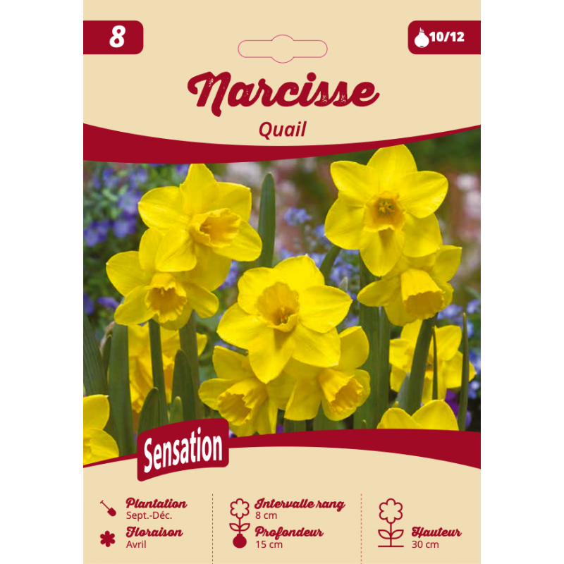 Le narcisse Quail s’intègre parfaitement dans les massifs printaniers aux côtés de tulipes, muscaris ou jacinthes. Il est aussi idéal pour la culture en pots ou jardinières et pour la fleur coupée.