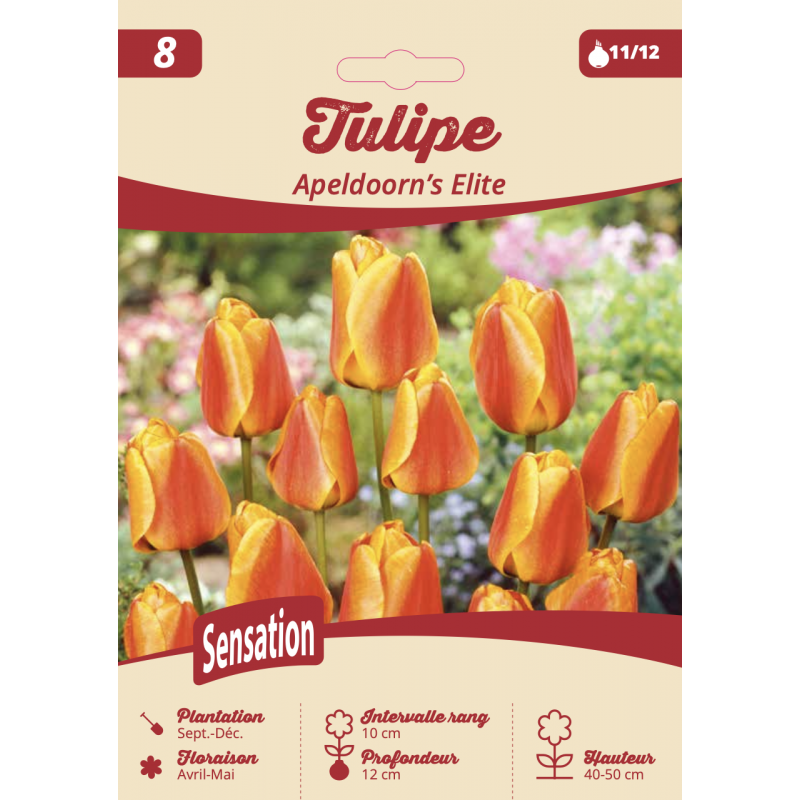 La Tulipe Apeldoorn’s Elite est une variété emblématique du printemps, réputée pour sa floraison généreuse et ses coloris éclatants. Ses grandes fleurs en coupe se parent d’un rouge écarlate bordé de jaune vif, créant un contraste spectaculaire dans les massifs. Robuste, vigoureuse et fiable, elle revient fidèlement d’une année sur l’autre, faisant partie des tulipes dites “Darwin Hybrid”, connues pour leur excellente tenue et leur floraison durable.
