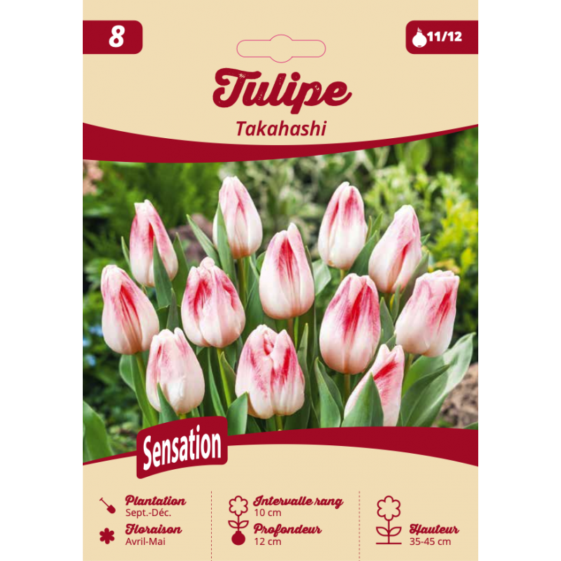 La Tulipe Takahashi est une variété d’exception qui séduit par son coloris délicat et raffiné. Ses grandes fleurs élégantes arborent une robe rose tendre nuancée de blanc nacré, avec des pétales légèrement effilés qui lui confèrent un aspect gracieux et lumineux. Cette tulipe raffinée apporte une touche de douceur et d’harmonie au jardin de printemps, aussi belle en massif qu’en potée ou en bouquet.