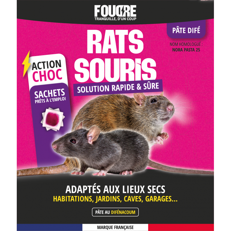 Grâce à sa formulation à base de Difénacoum, anticoagulant de deuxième génération, cette pâte garantit une consommation rapide et une efficacité progressive mais sûre, même sur des rongeurs méfiants ou partiellement résistants à d'autres molécules.